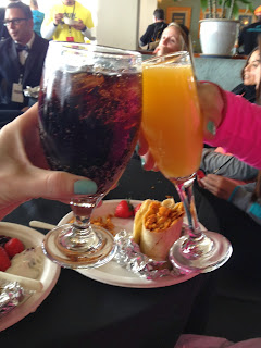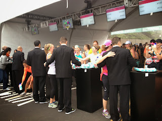 Then this magic happen. My nuun Mom and her side kick Zoe gave us NIKE VIP bracelets. Again so stinking sweet and thoughtful! This was the golden ticket to get into private bathrooms, free food and warmth!! It was soooo nice. We totally did not fit in but loved every minute of it and stuffed our face! (Also huge props to Kim and Zoe who ran 13.1 miles and then went straight to work...hardcore)